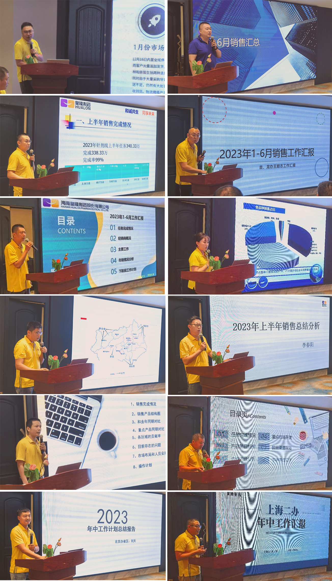 內(nèi)蒙、陜西、吉林、黑龍江、遼寧、山東、上海、安徽、江蘇、河南、河北、浙江、北京、山西等辦事處,24位省區(qū)或線經(jīng)理,分享了上半年工作體會(huì)和一些具體做法。從集采與非集采品種臨床運(yùn)作,到零售和第三終端的客戶激勵(lì),大家暢所欲言,提出了諸多建議。大家一致認(rèn)為,沉下身、走下去,跟活動(dòng)、促銷售,詳解主要模式,拿出應(yīng)對(duì)辦法。自我反思,積極改變。